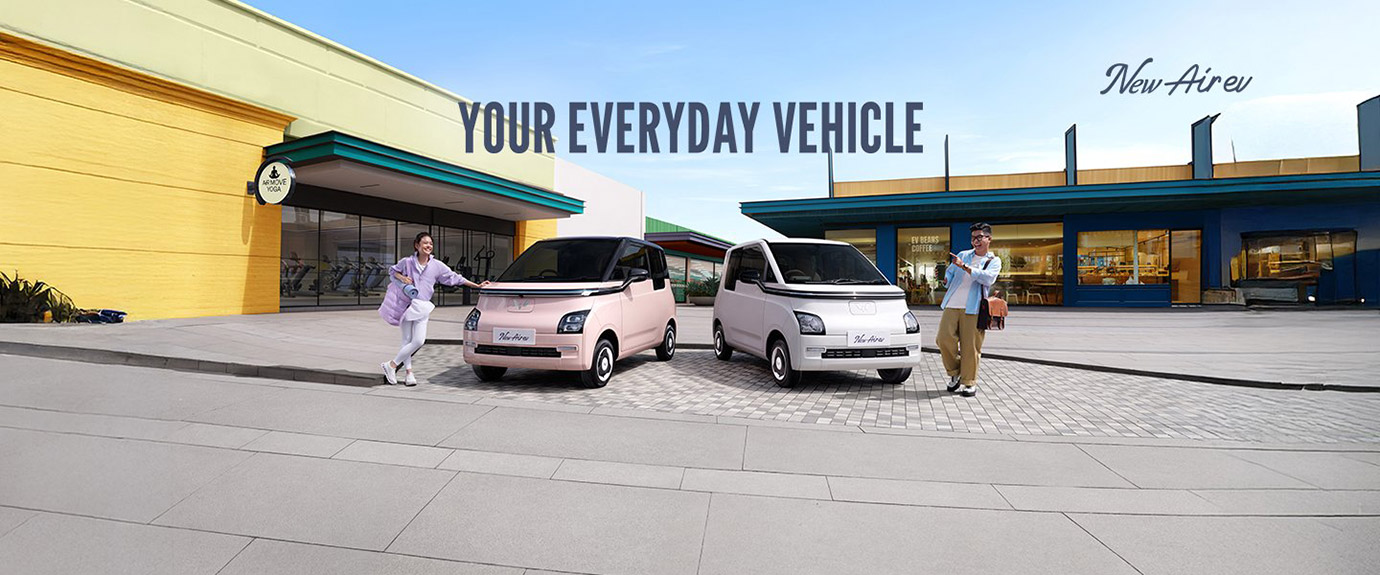 Wuling Air ev, kendaraan listrik ini menonjolkan kemudahan berkendara yang memampukan penggunanya untuk bergerak bebas menembus tantangan perkotaan, layaknya udara yang dapat bergerak bebas. Dengan tagline Drive For A Green Life, mobil tanpa emisi ini sesuai bagi konsumen dari semua kalangan yang bangga dan ingin berkontribusi dalam menjaga kelestarian lingkungan.